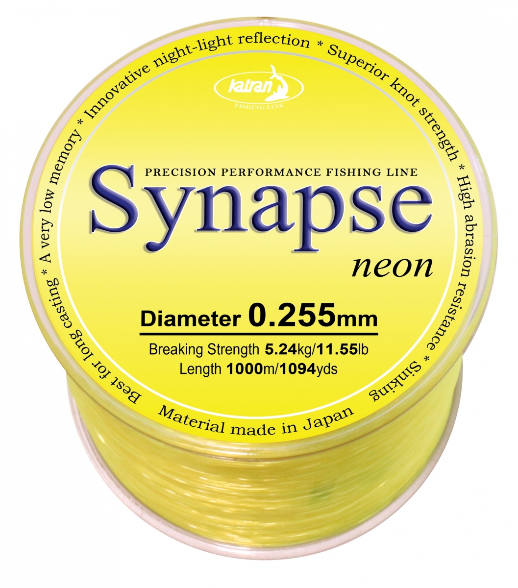 Jsme hrdí na to, že můžeme představit zbrusu nový Synapse Neon, který používají kapraři z celé evropy pro dosažení etxrémních odhozových vzdáleností až na hranici 200m. Hladký, fluorescenční, rychle potápivý vlasec s nízkou průtažností a vysokou pevností v uzlu je pod vodou vidět mnohem méně, než jakékoliv jiné barevné vlasce. Naopak při nasvícení světlem odráží světlo, takže tento vlasec doporučujeme při lovu v noci.Balený v plechové krabičce s kapacitou 1000 metrů
