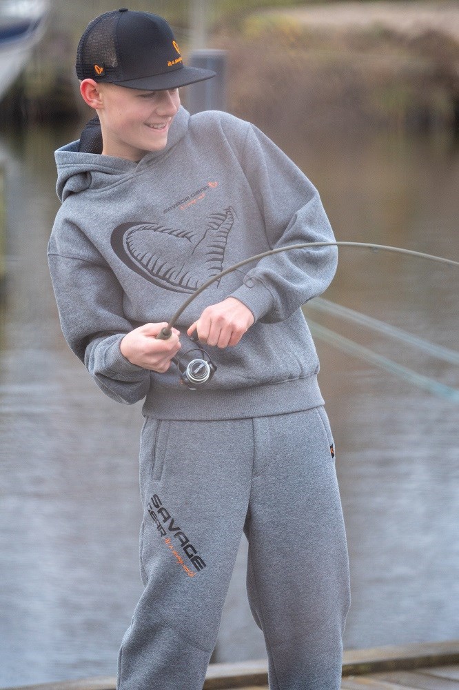 Savage Gear Mikina Junior Jaw Hoodie Grey Melange