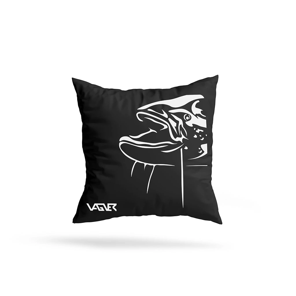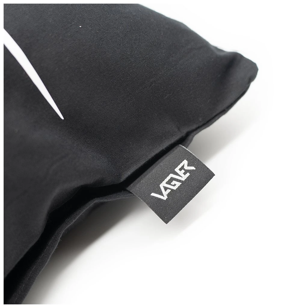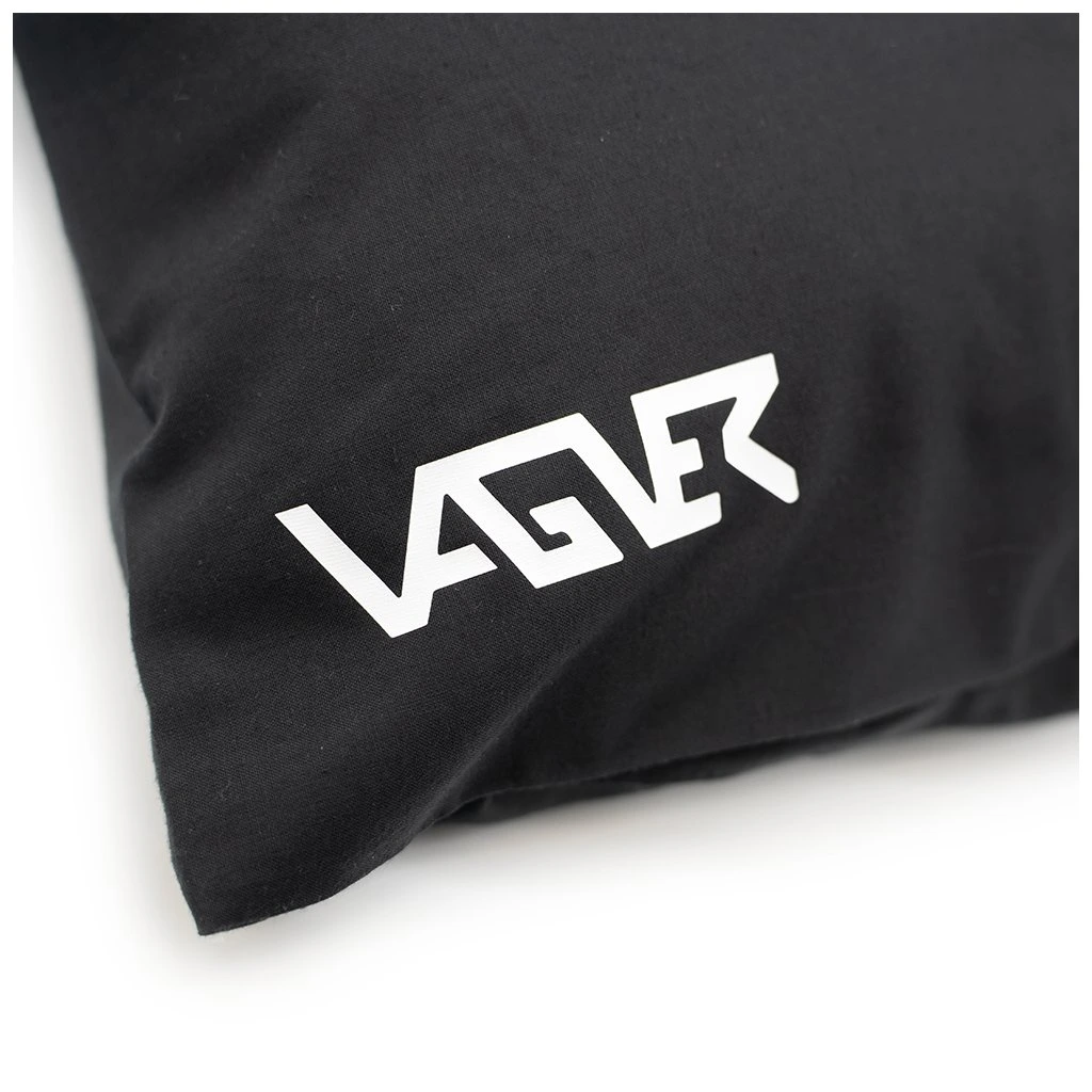 Polštář černé barvy s logem VAGNER. Povlak polštáře lze vyprat.